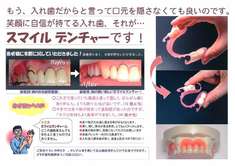 - 違和感が強い。食後に取り外して、洗ったりブラッシングを行わないと歯茎が炎症を起こしたり隣の歯が虫歯になりやすい。咬む力が不十分である。